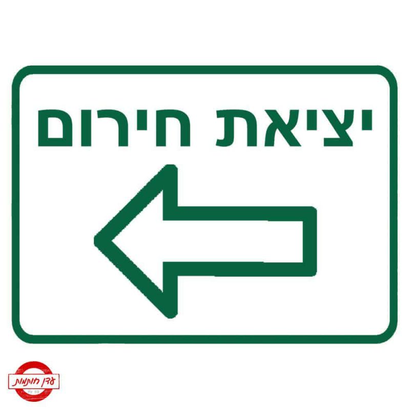 בקצרה על שלט יציאת חירום עם חץ שמאלה: